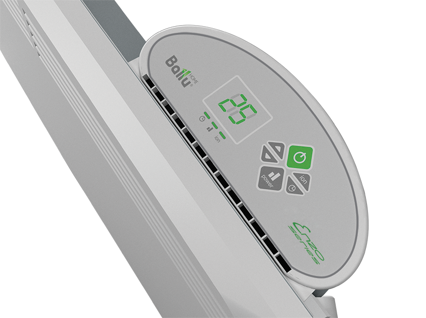 Электрический конвектор Ballu работает в двух режимах обогрева – на полную мощность и в полмощности. Регулировать степень нагрева прибора Вы можете с помощью электронного термостата, которым оборудован этот обогреватель.